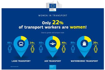 Con tan solo un 22% de mujeres, el sector del transporte no presenta un equilibrio de género. Es necesario fortalecer el empleo femenino y la igualdad de oportunidades entre mujeres y hombres en el sector del transporte.